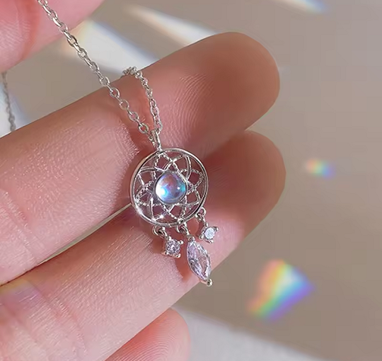 Crystal Tassel Moonstone Charm Necklace