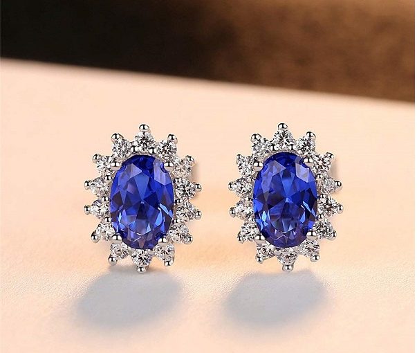 Blue sapphire silver earring