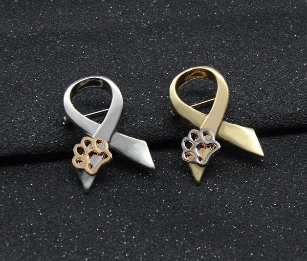 Dog paw ribbon brooch pin