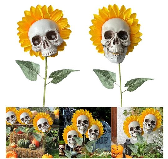 Halloween decor skull sunflower