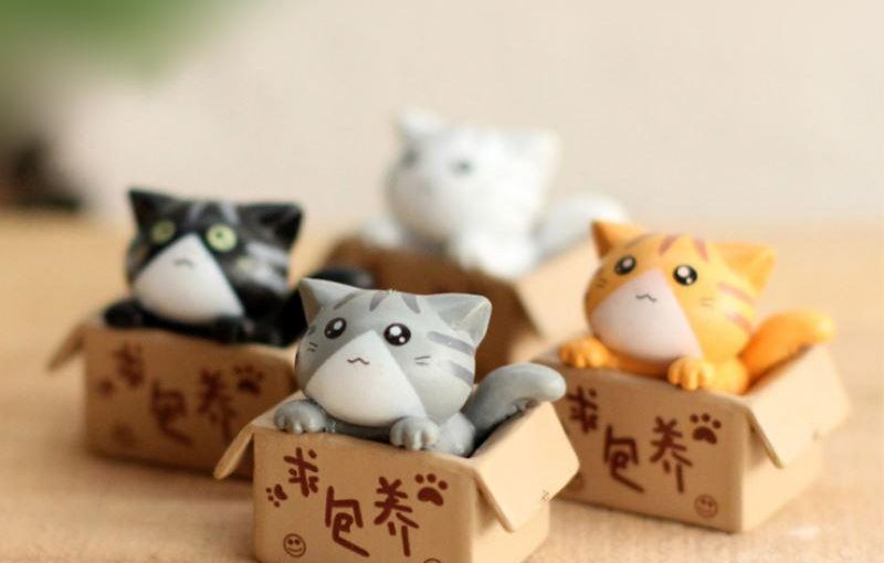 Miniature garden in a box decorative cat