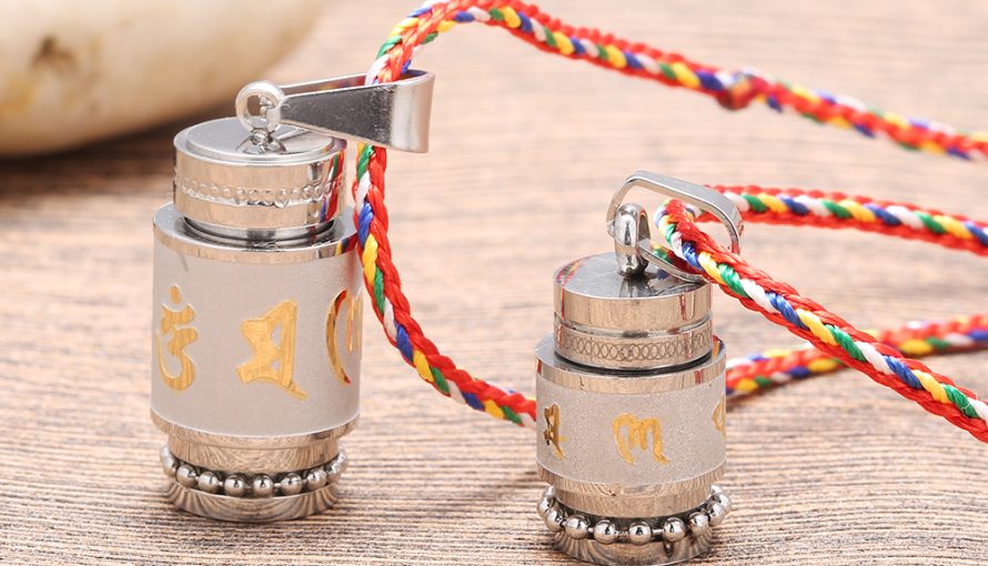 Tibetan prayer wheel pendant & chain