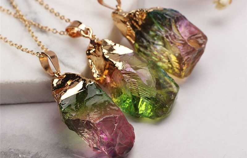 Pinksee colorful chakra rock necklace
