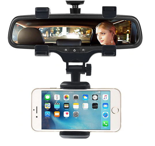 Rearview mirror phone holder