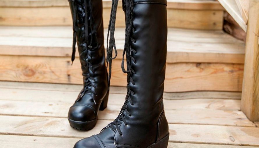 Black knee high gothic boots